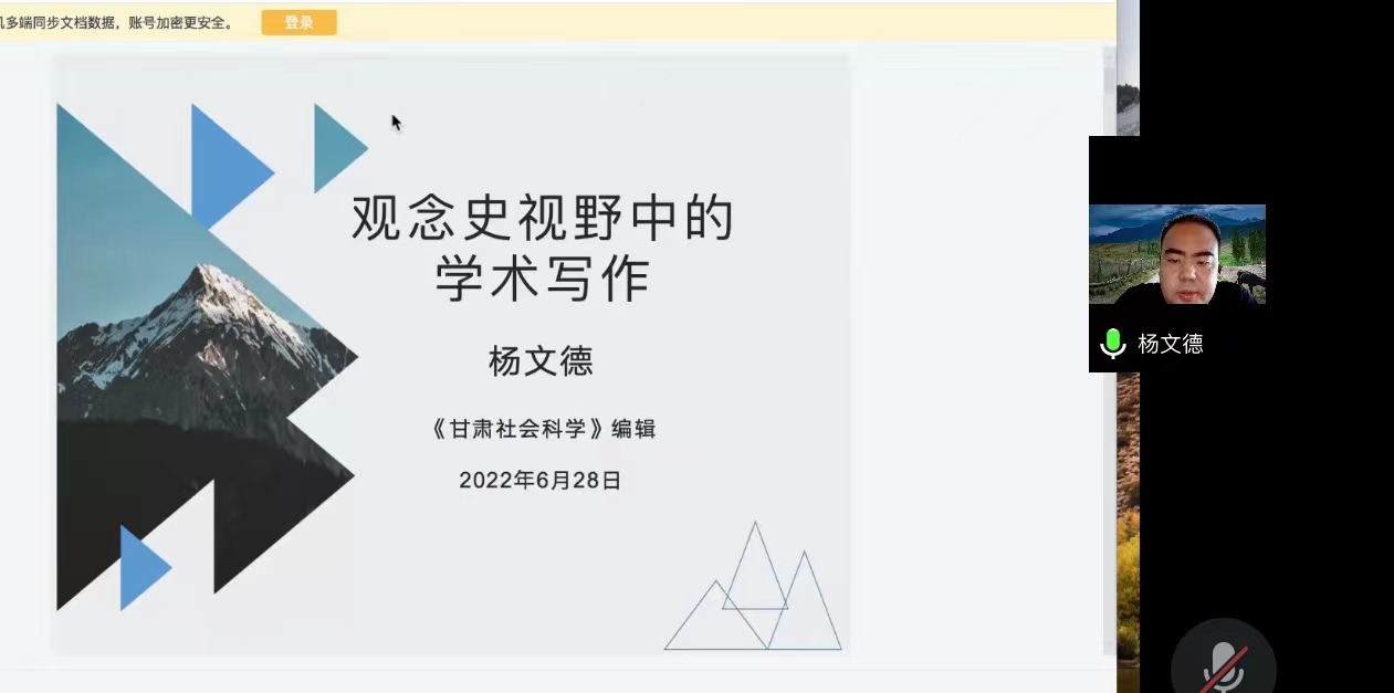 2022年6月28日下午3点,304永利集团泮池法学论坛第98期在腾讯会议线上顺利举行。本次讲座的主题为“观念史视野中的学术写作”,主讲人是澳门科技大学法学博士杨文德。杨文德博士是《甘肃社会科学》《澳门法政杂志》编辑,《甘肃法治建设报告》副主编,《陇上学人文存》学术编辑,同时发表学术论文、文学评论、人物评访等十余篇。主持、参与国家社科、中国法学会及省社科项目多项,获中国版协优秀图书奖、省社科优秀成果奖、省出版科研优秀论文奖等多项。讲座由304永利集团讲师李晨光主持,《高等公司文科学术文摘》常务副主编、法学栏目责任编辑沈丽飞、304永利集团特聘教授刘迎霜作为评议人参与会谈。