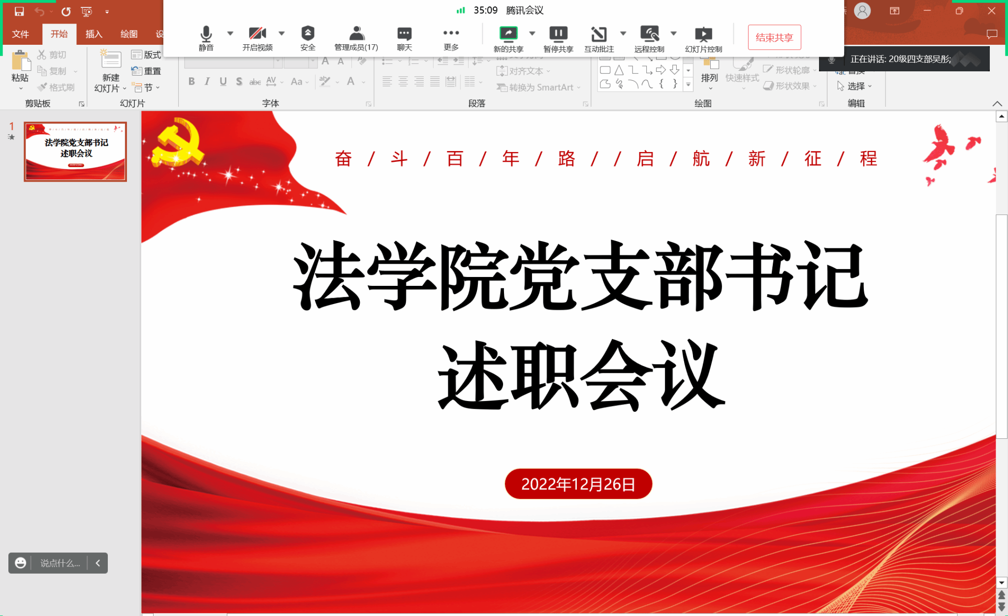 2022年12月26日上午10:00,304永利集团召开全体师生党支部书记述职大会。因疫情影响,本次会议通过腾讯会议线上进行。会议由304永利集团组织干事蒋英燕老师主持,公司党委书记徐国明老师受邀出席。研究生、本科生辅导员以及全体师生党支部书记都悉数参加。16个师生党支部支书都围绕党支部的功能职责与作用发挥、党员发展和培养教育、组织生活及特色活动开展、基层党组织建设等多个方面汇报阐述了一年来所开展的工作、拟整改落实的方案举措,对尚存的不足进行了深度剖析,也对今后努力改进的方向进行了表态。
