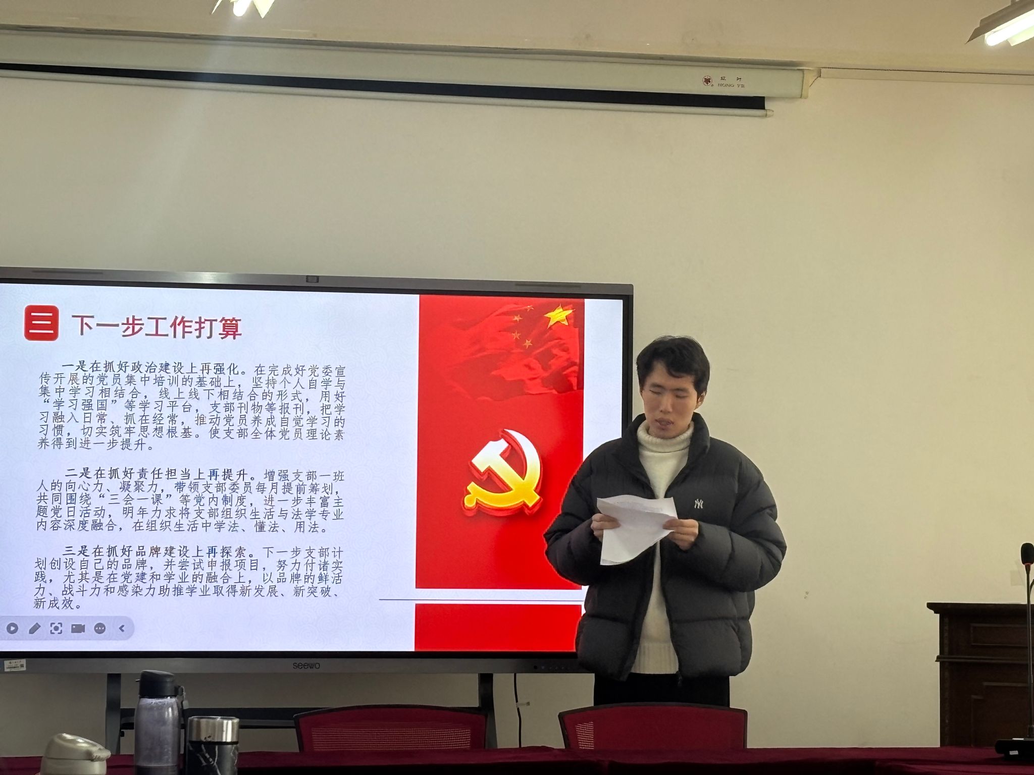最后,徐国明书记作总结。他首先对13个师生党支部在2024年努力推进的各项工作与取得的成绩和荣誉表示肯定,感谢各位支部书记的辛苦付出,并对各支部书记本年度的述职报告提出了完善建议,对2025年公司基层党建工作的规划与建设提出要求:一是要抓好基层党建工作检查反馈问题的即知即改;二是师生党支部要落实好主题党日、“三会一课”制度,夯实党建工作基础;三是要深化特色党支部建设、凝练党建品牌,充分发挥法学学科的专业特色;四是要发挥好党支部的战斗堡垒作用,激发教职工党员、员工党员的活力和创造能力。