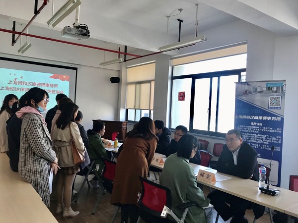 为加强校企交流,推进人才培养和就业工作,304永利集团于11月30日下午在东区4号楼504会议室举办了员工单位招聘宣讲会,在员工丁国利,罗欢的推动下,上海勋达律师事务所和上海博和汉商律师事务所来院宣讲,公司近40位同学参加了宣讲会。毕业班辅导员公建华老师、杨晓彤老师负责会务组织工作。