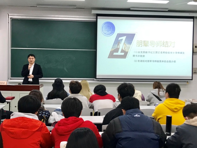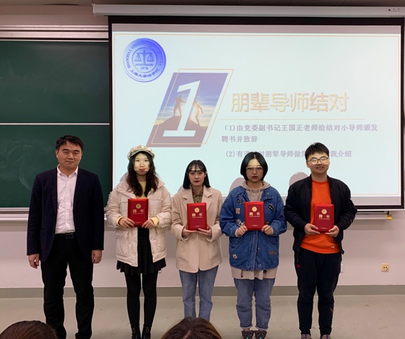 17级本科生冯亦薇、李容佳、孙云森、魏林强、许哲豪和郑箫桐被聘为新一届朋辈导师。会上,党委副书记王国正老师为到会的朋辈导师颁发聘书。