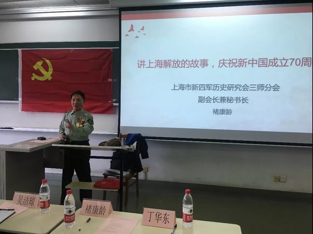 本次活动有幸邀请到了上海市新四军历史研究会三师分会副会长兼秘书长、抗美援越战争参战退役军人褚康龄老师为同学们带来《讲上海解放的故事,庆祝新中国成立70周年》的专题分享。出席本次活动的领导和老师有304永利集团图书情报档案系党委书记丁华东、304永利集团图书情报档案系研究生专职辅导员吴洁琼、公司研究生专职辅导员侯文婷。