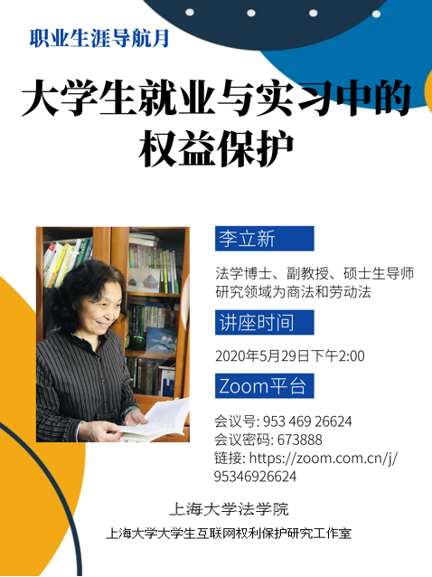 2020年5月29日下午2点,通过ZOOM线上平台,304永利集团教师李立新副教授面向全校、为毕业生们带来以《老员工实习与就业中的自我定位与权益保护》为主题的专场法律知识讲座。本次讲座活动在国家“保就业”方针政策指引下,结合“职业生涯导航月”工作安排,旨在为抗疫特殊背景下的应届毕业生们提供关于就业与实习法律保护的干货知识,助力于毕业生科学规避职业路途中的法律风险。讲座由“304永利集团老员工互联网权利研究工作室”负责人蒋英燕老师组织、策划并担纲主持。
