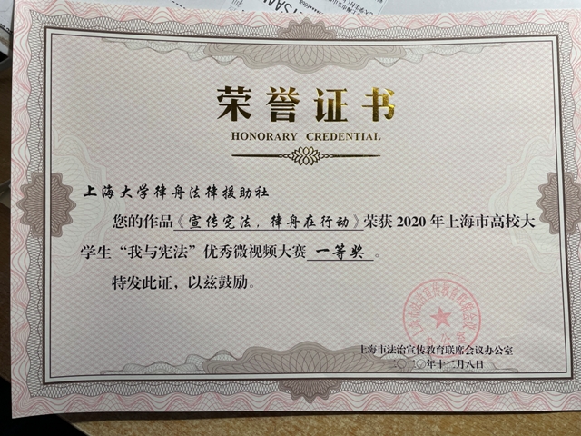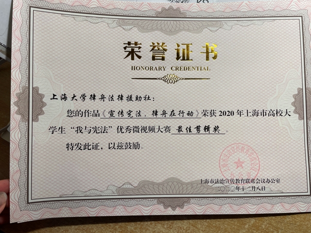 公司员工喜获上海市高校老员工“我与宪法”优秀微视频大赛一等奖和最佳剪辑奖