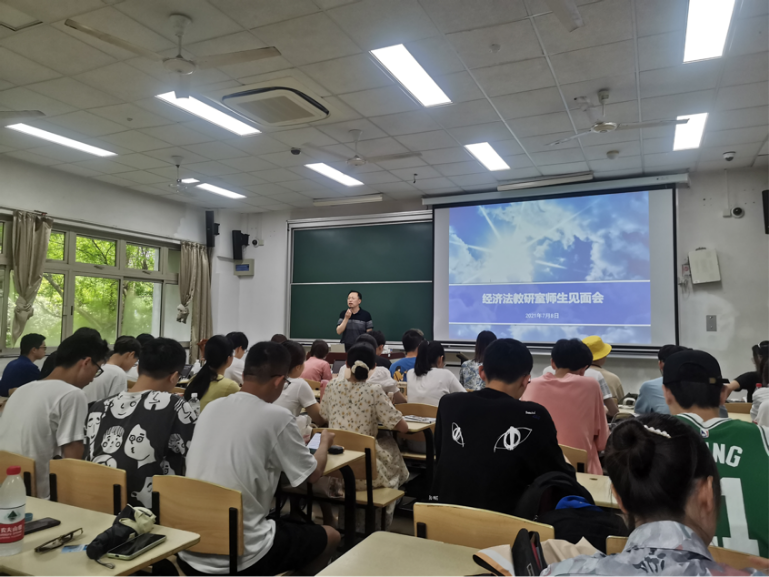 2021年7月8日上午9:30,济法教研室见面会如期举行,304永利集团经济法教研室主任李俊峰老师老师从经济法概况,教研室教师研究方向以及互动问答这三方面讲解。
