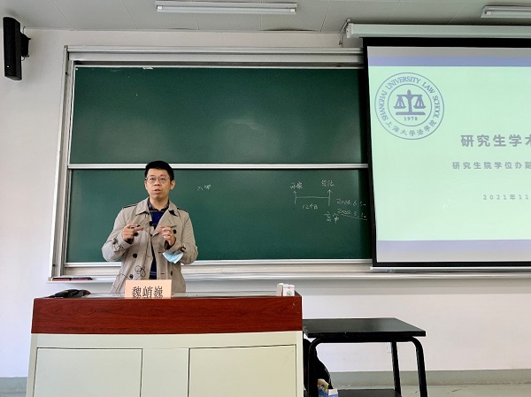 2019、2020级研究生在BJ204开展“研究生学术规范”主题教育。魏峭巍老师围绕研究生学位论文撰写问题展开了交流分享。