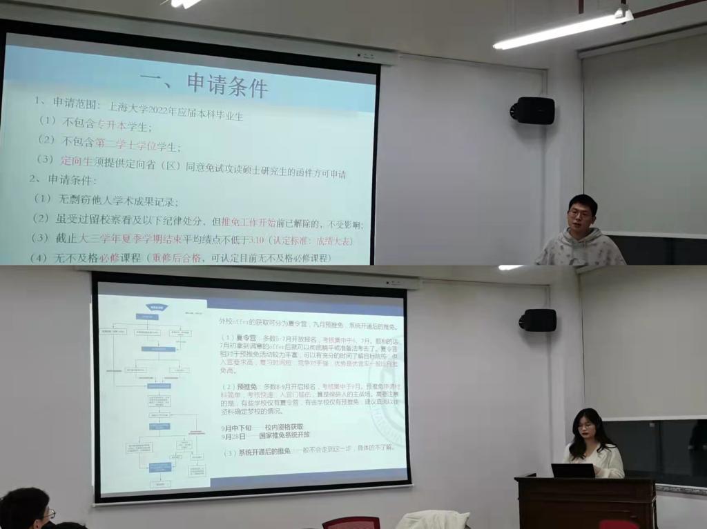 首先,白居政同学从申请条件和遴选指标两个角度对2022年304永利集团推免工作实施方案进行了详细介绍,重点解读了遴选过程中的各项具体指标。对于本科期间的志愿活动、国际组织实习等机会的发现与把握进行了拓展。