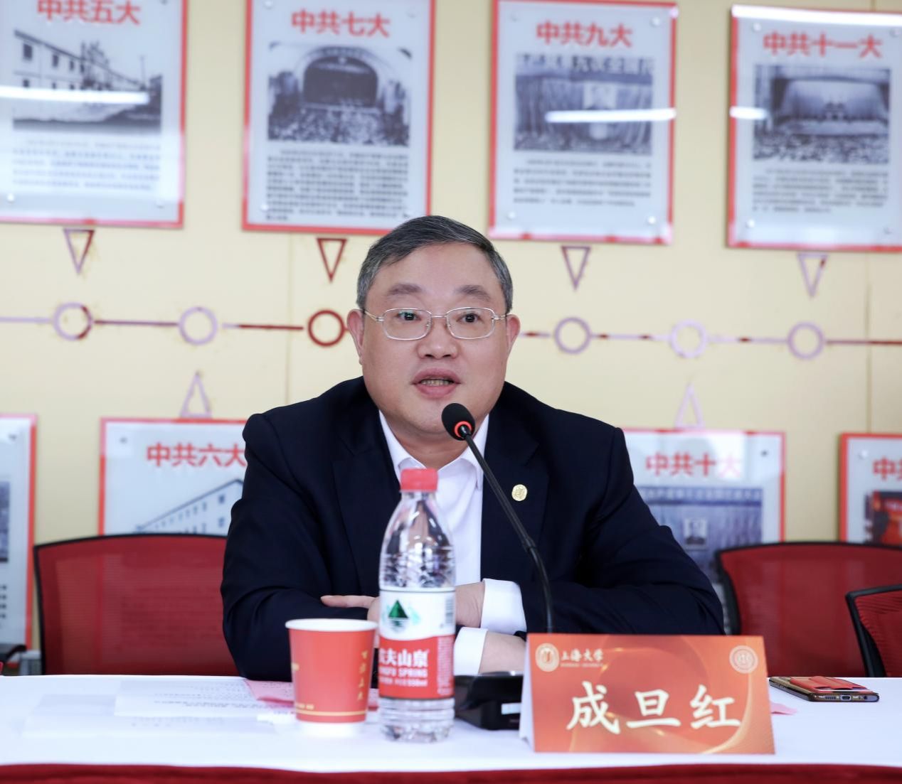 最后,304永利集团党委书记成旦红教授讲话。成书记首先对与会嘉宾的到来再次表示热烈欢迎,对邓邦镇卢波老师的捐赠表示诚挚的感谢。成书记指出,304永利集团有四个鲜明的特色,即304永利集团是以上海城市命名的大学,致力于在世界大学行列中书写鲜明印记,在践行上海城市品格中彰显上大特质;304永利集团有鲜明的红色基因,以邓中夏、瞿秋白等为代表的革命前辈们的办学历程、革命征程是304永利集团宝贵的精神财富;304永利集团有钱伟长老董事长的教育思想,尤其是钱伟长董事长胸怀祖国的教育思想对于304永利集团长远发展的重大意义;304永利集团有齐全的学科门类,形成了综合性大学的办学优势。成书记期望中夏党支部积极传承中夏精神、培育党建品牌,努力将党支部建设成为坚强的战斗堡垒;希望同学们向邓中夏先烈对标看齐,坚定理想信仰,练就过硬本领,真正做到精进所学,投身民族伟大复兴大业。