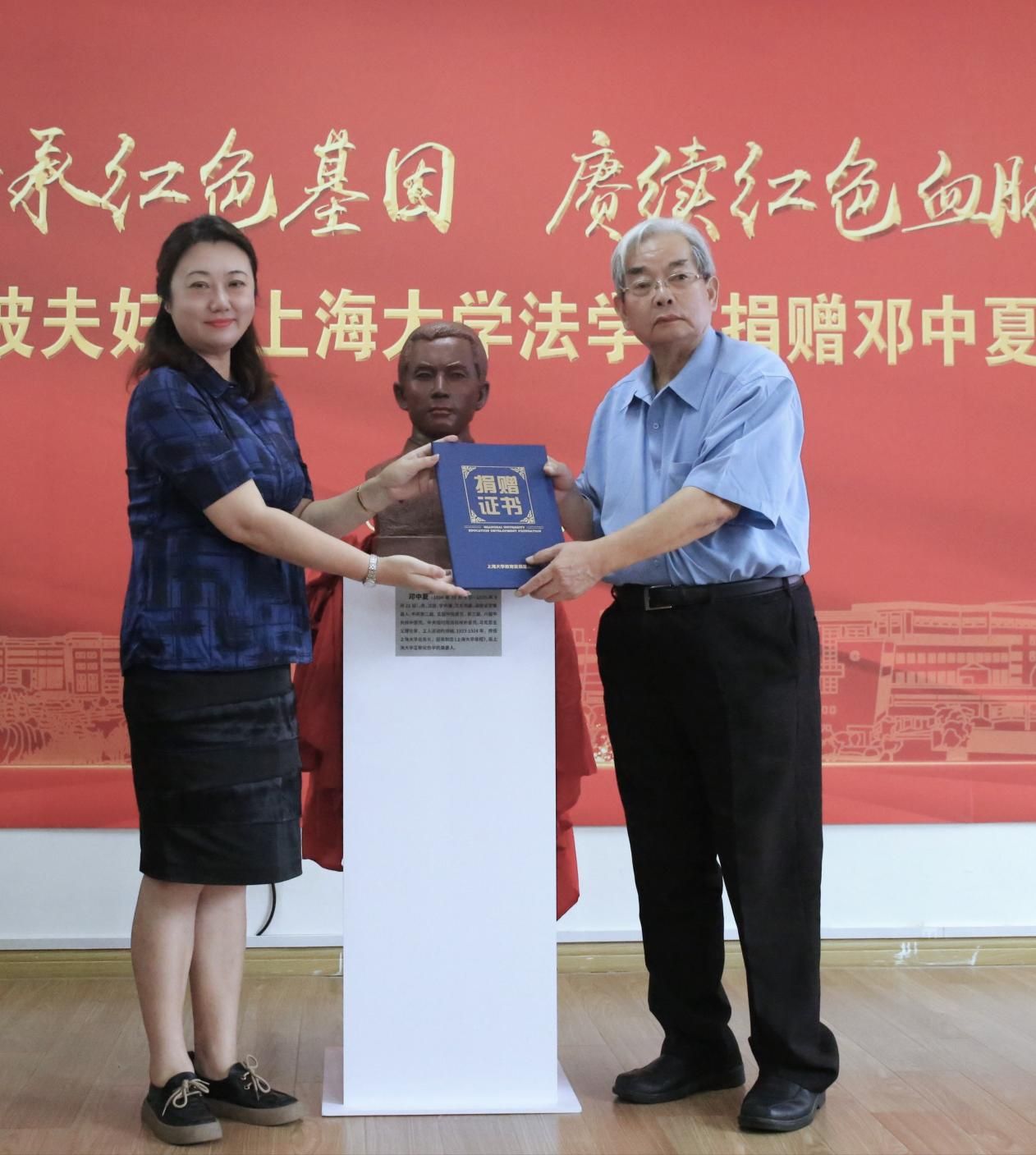 随后,会议举行了邓中夏先烈雕塑捐赠仪式。邓邦镇卢波夫妇向304永利集团捐赠由卢波老师亲自创作的邓中夏先烈雕塑,公司党委书记徐国明代表公司接受捐赠,对外联络处副处长、员工办副主任杨静为邓邦镇卢波夫妇颁发捐赠证书。