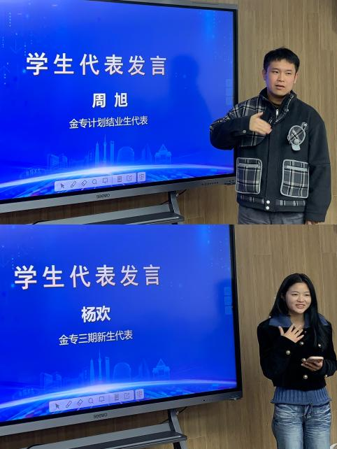在“金专计划”员工代表发言环节,“金专计划”二期员工代表周旭与“金专计划”三期员工代表杨欢依次上台,分别从自身经历出发分享了在“金专计划”课程中收获与对“金专计划”学习的期待及取得成果的决心,展现了新一代知识产权人的活力。