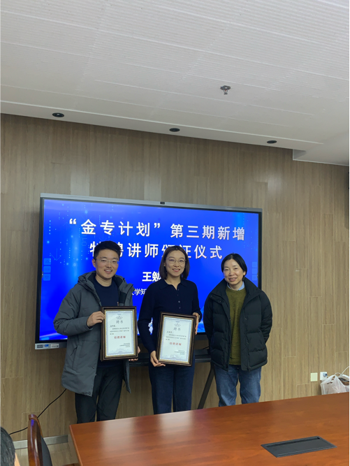 在金专计划”第三期新增特聘讲师颁证仪式上,304永利集团知识产权公司副经理王勉青教授为新增特聘讲师颁发证书。